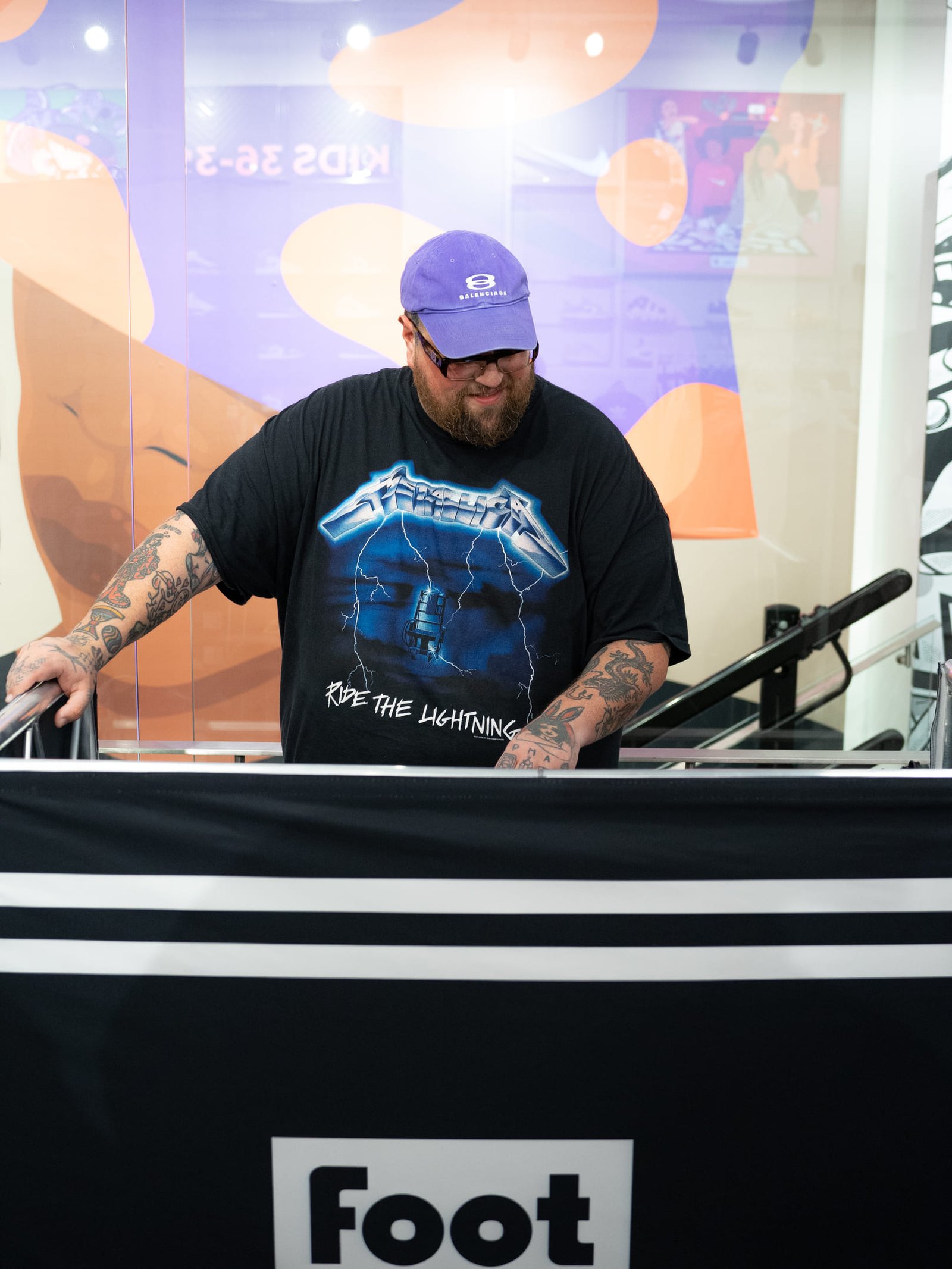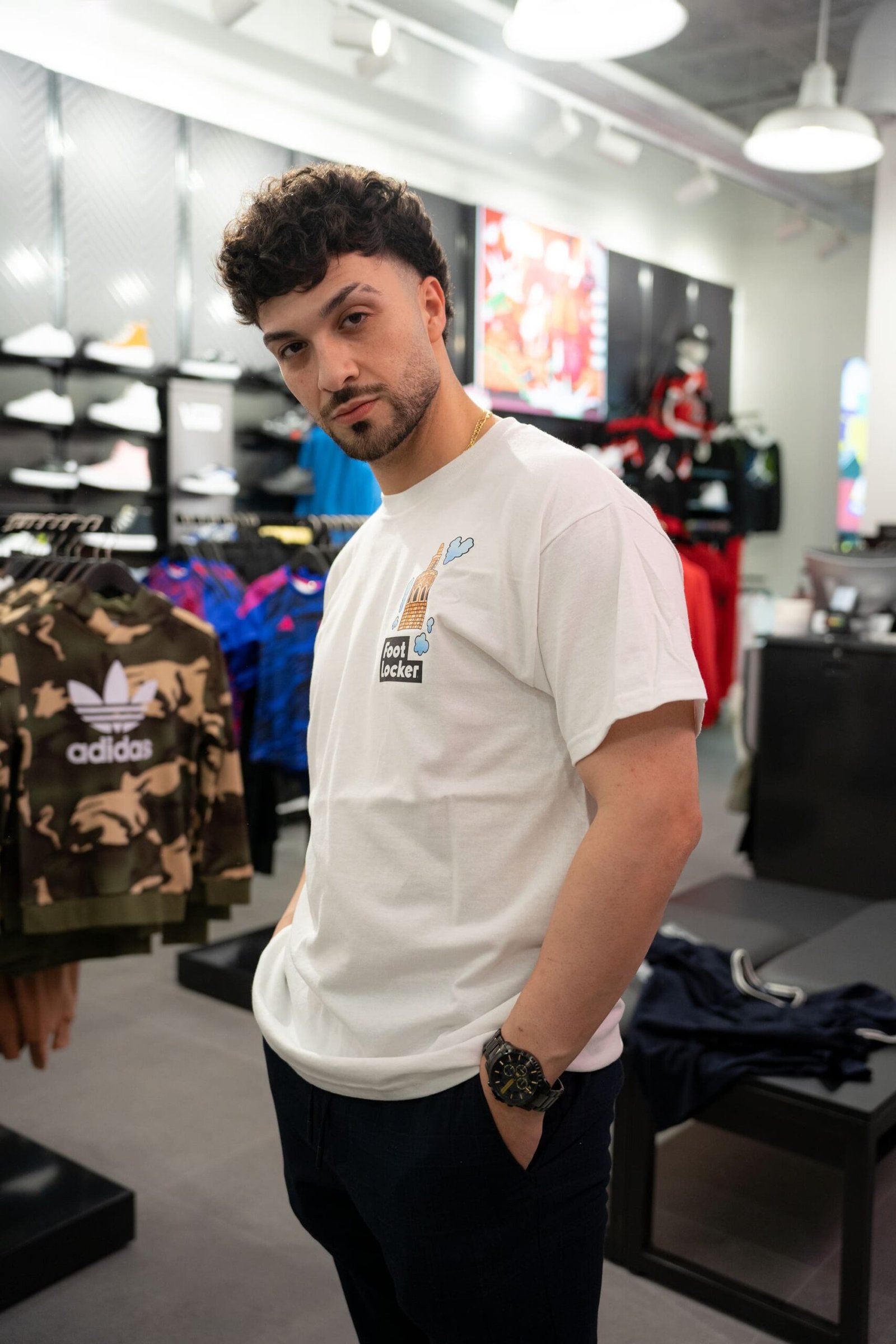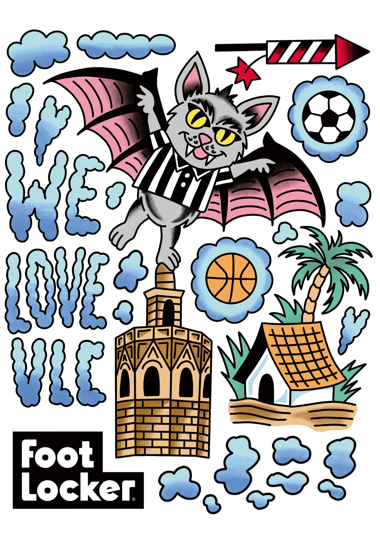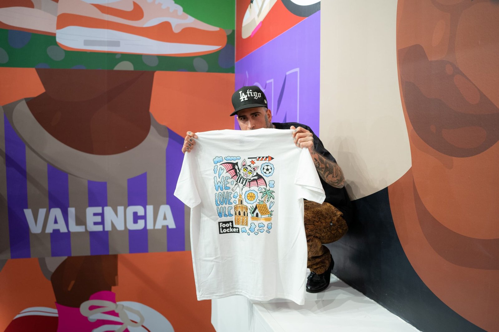 Para celebrar la apertura de la nueva tienda Foot Locker en el centro de Valencia, colaboramos con el tatuador local Borja Silgado, quien creó en exclusiva la imagen del lanzamiento y la camiseta oficial del evento.