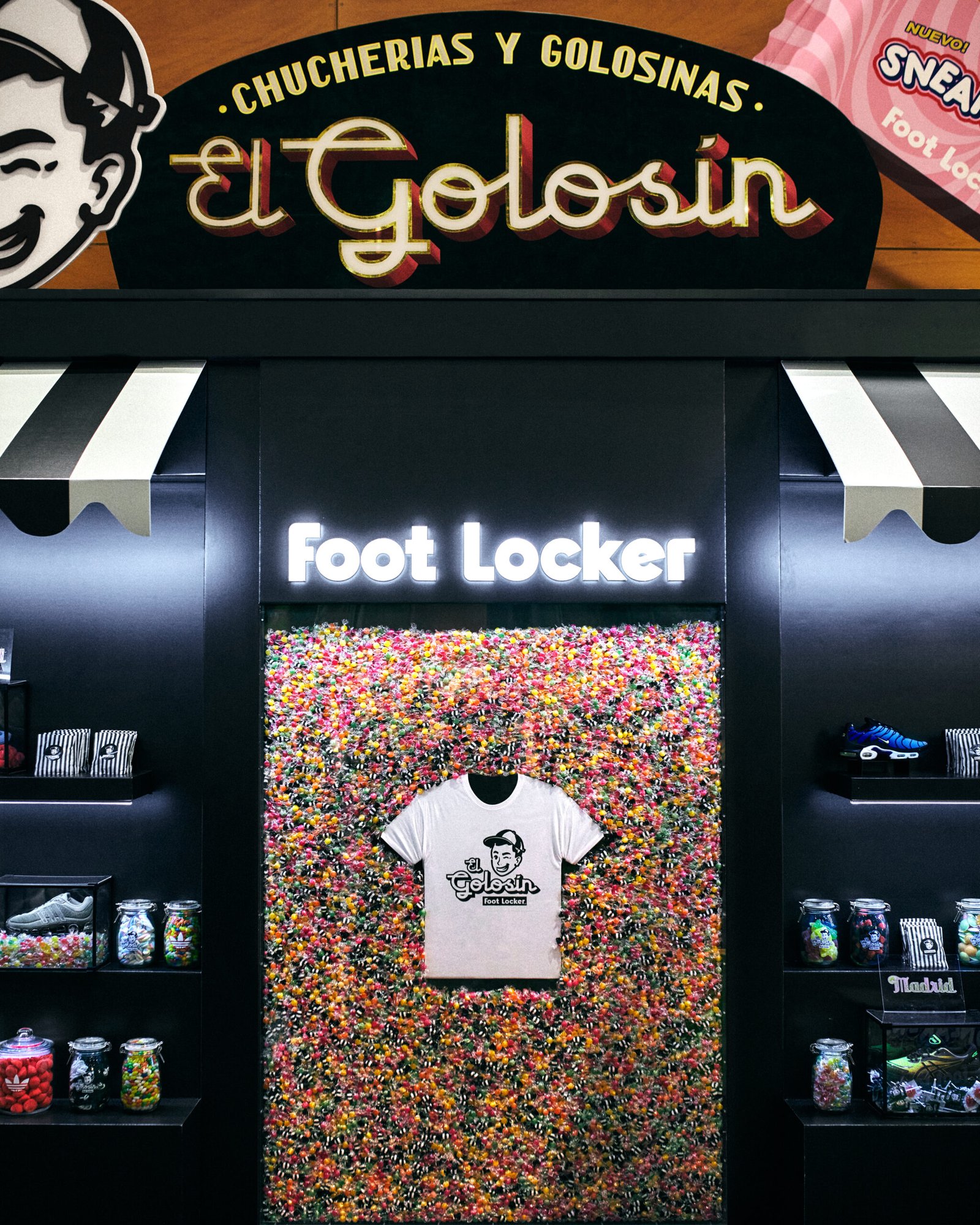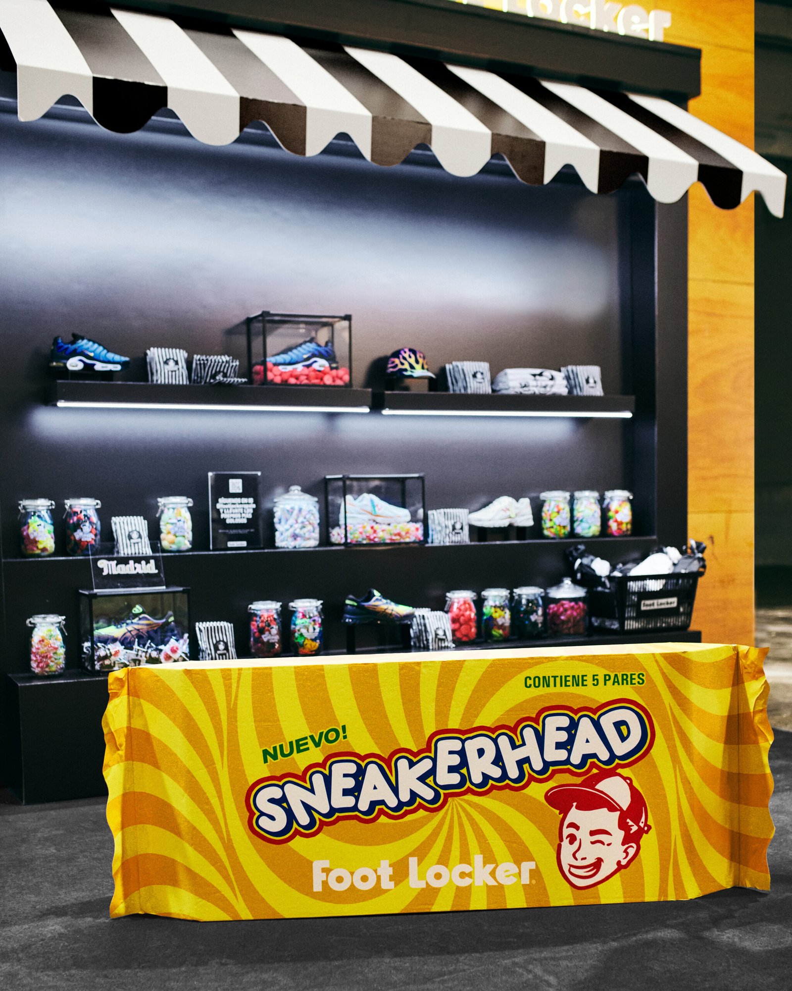 En Scrapworld, el evento de streetwear más importante de España, creamos el stand El Golosín: un guiño a las clásicas tiendas de caramelos y frutos secos de Madrid, llevado al terreno urbano de Foot Locker.
